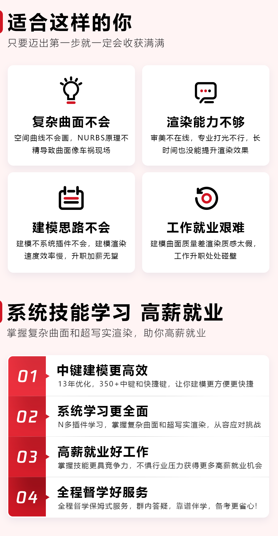 通过案例讲解教会大家如何将基本体、曲面建模技巧及知识点运用到产品造型中,学习Rhino插件T-Splines多边形建模方式、了解KeyShot软件渲染原理和内核参数的作用。